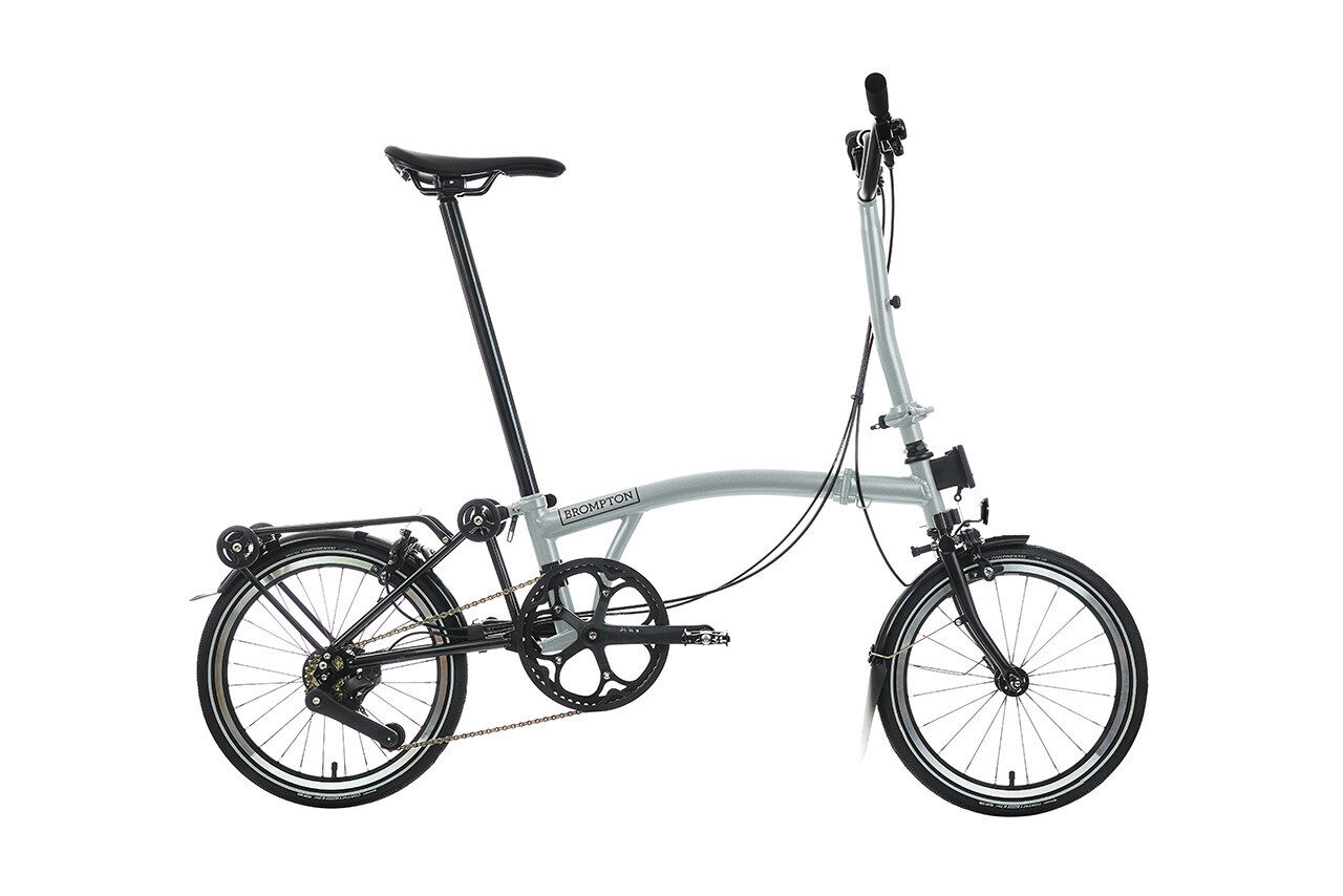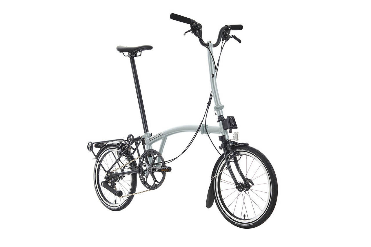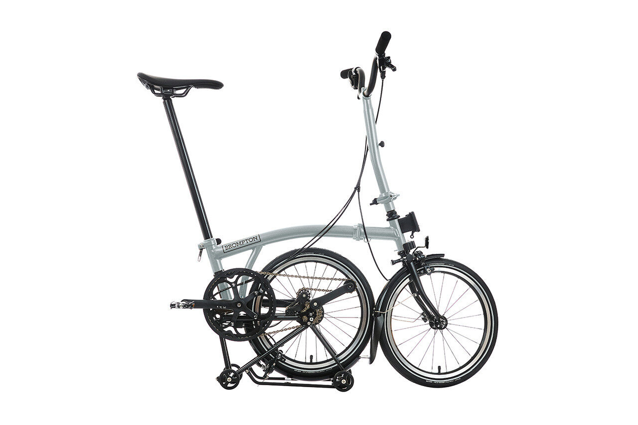 Brompton P Line 12-Speed Folding Bike with Roller Frame | Lunar Ice, Titanium Frame